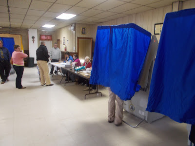 This is what democracy looks like. Marianne and I got up this morning, walked over to the Knights of Columbus hall, voted, and then went over to Crossroads Coffee House for breakfast. It wasn't very dramatic.