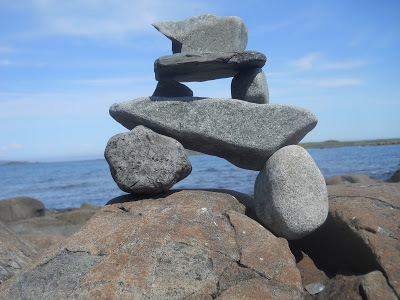 Above: At the tideline of L'Anse aux Meadows, tourists pile up rocks in imitation of Inuit territory markers. This is one of the better ones.