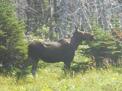 .So today I was standing by the French bread oven in Port au Choix when Gail said, "I hear something snorting in the woods." At which cue, the branches shook and out strolled a moose.