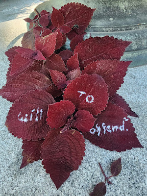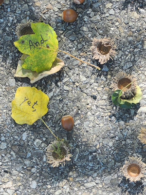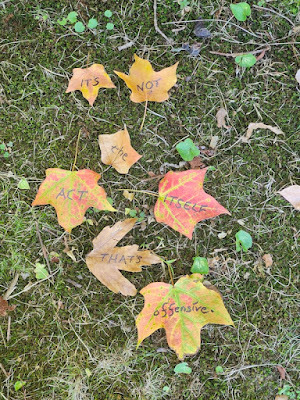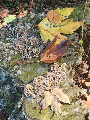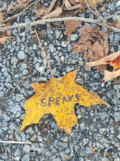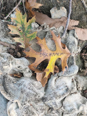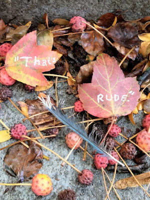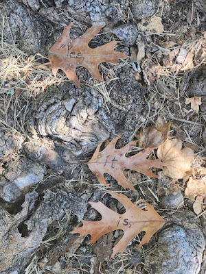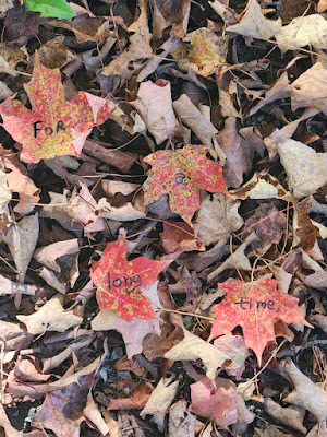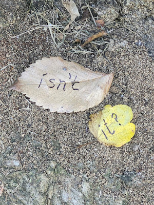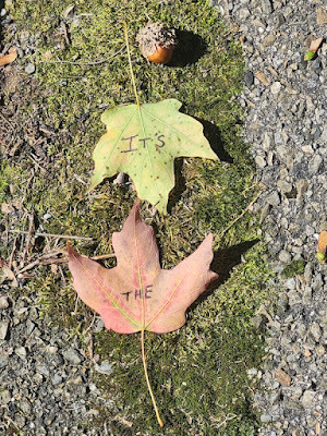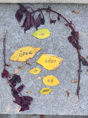 Above: Every autumn, I create a Halloween story, write it out on leaves (one word per leaf), photograph the leaves, and then abandon them where I found them. The story is then serialized here, starting on October 1 and concluding on the 31st--All Souls Day.