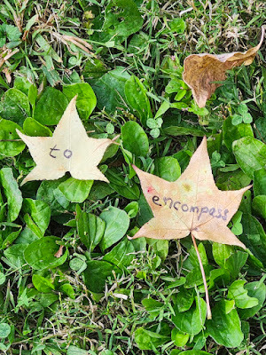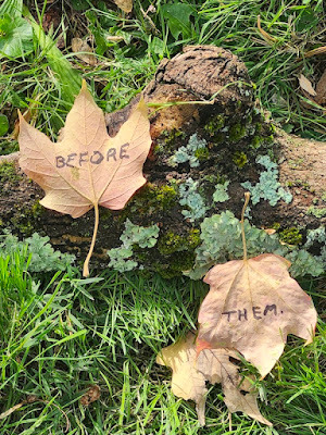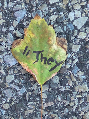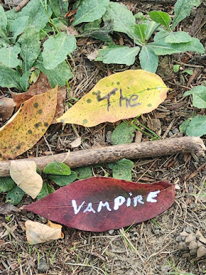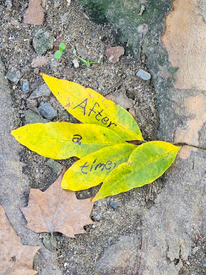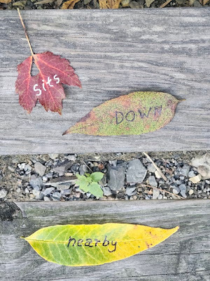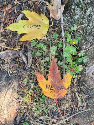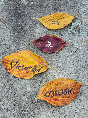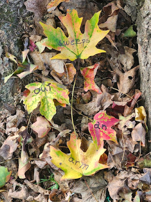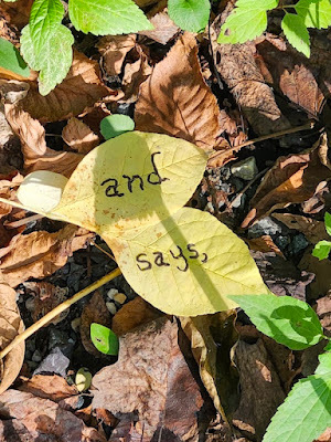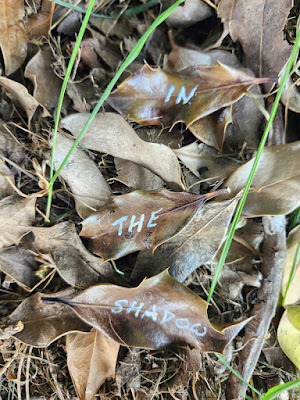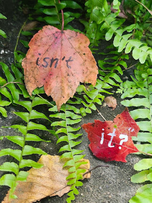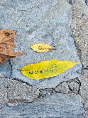 Above: Every autumn, I create a Halloween story, write it out on leaves (one word per leaf), photograph the leaves, and then abandon them where I found them. The story is then serialized here, starting on October 1 and concluding on the 31st--All Souls Day.