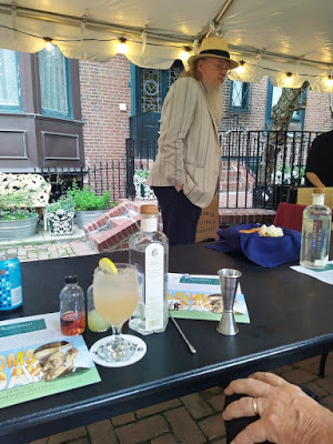 Top: The man in the striped Jacket is Edward Pettit, who organized the event. Expertise was provided by Nick and Lee, from Art in the Age of Mechanical Reproduction (bar supplies and tasting room) here in Philadelphia. The gin was from Tamworth Distilling, which is in New Hampshire but own by Art in the Age.