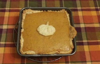 So we decided to adopt this custom as our own. Marianne made squash pie in a square pan, and even made a small crust acorn squash to go on top.