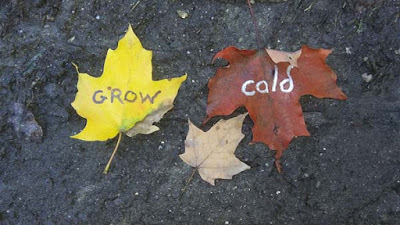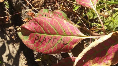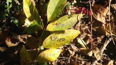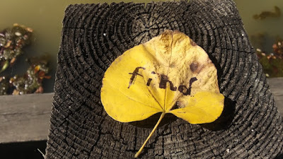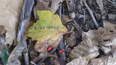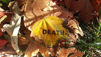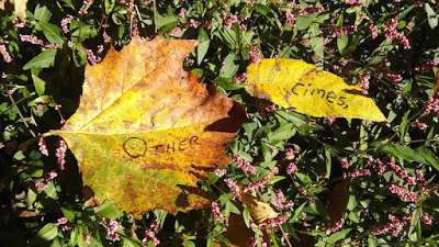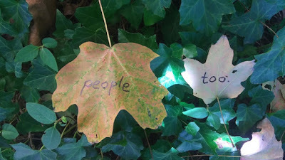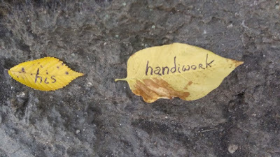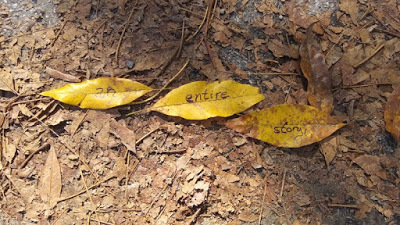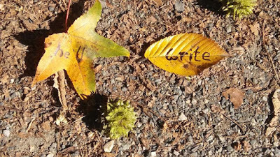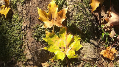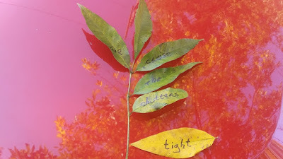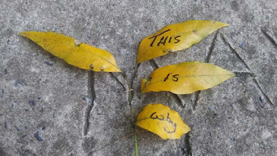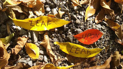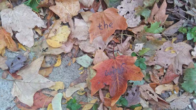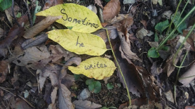Plain text: Sometimes he writes words on leaves: AUTUMN, perhaps, or DEATH.