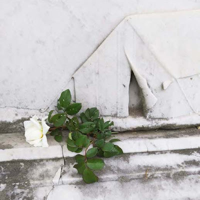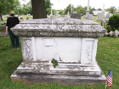 It being Memorial Day, Marianne and I went to Levering Cemetery for the flag-raising ceremony. We cut some roses from the back yard and left them on two graves and a memorial. The white one we left on Hetty Jones' tomb. Technically, she wasn't a soldier, but I don't think any vets would mind. She was one of many young women who volunteered to serve as nurses in the Union field hospitals. In Virginia, she caught one of the diseases that ripped through the wounded and died.. Her family reared an elaborate marble tomb in her memory--clearly they had money. Every time I see it, I think of what a long and comfortable life she might have had if she hadn't put the welfare of others before her own.