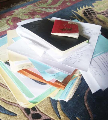 The small black book and smaller red booklet on the top are notebooks. I'm rarely without a notebook and I use them to jot down ideas and notions.