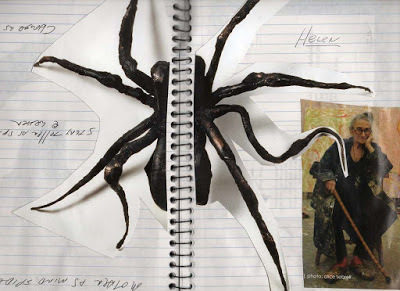 The influence of Louise Bourgeois is pretty obvious here. Late in life, she created those wonderful, terrifyingly realistic giant spiders with long steel needles at the end of their legs and said that they were all about her mother. Who made a living repairing tapestries, using long steel needles. So it's not the slap in her face it might seem.