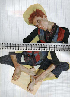 Here on the inside cover of the Zero Notebook is a first glimpse of Caitlin. It's a photograph of a young Russian doctor and, although it misrepresents Caitlin's ethnicity entirely, it does capture her innate seriousness. Added to which are birds in flight, because flight is in her nature, and a miniature of a painting by Lucian Freud. This last was included for its lack of glossy magazine glamor but also, with a touch of irony, because I knew that the novel would be going deep into Carl Jung territory.