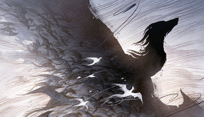 Every road and open doorway is a constant danger to a man of wandering disposition. Olav had stood on the threshold of his cottage one spring morning and the road had looked so fine that he couldn’t resist setting foot on it, and the next thing he knew it had carried him to the sea. There he chanced upon a merchant ship in need of a new hand. He learned the sailoring trade, fought pirates, killed a kraken, grew a beard, pierced an ear, and one memorable night won a handful of rubies at a single turn of the cards and lost them all to a barmaid who doped his ale. Two years later, he was shipwrecked off Thule and briefly married to a witch-woman who had blackwork tattoos on her face and had filed her teeth to points.