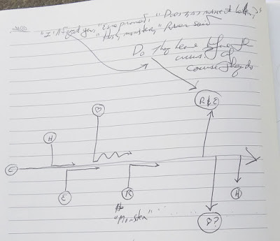 The clearer the novel becomes in my head, the simpler the diagrams. Here, Caitlin's journey is boiled down into three seps: