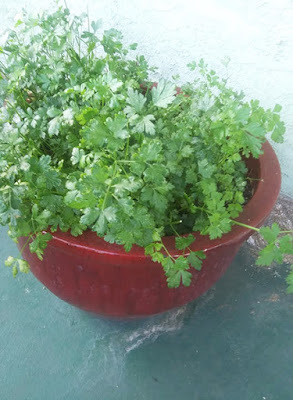 Pictured above is Marianne's swallowtail farm on the front porch. She didn't set out to raise butterflies. But it turns out that swallowtails love parsley. So they come unnoticed to lay their extremely small eggs, which hatch into extremely small caterpillars, which then proceed to eat and eat and EAT. Growing all the time.