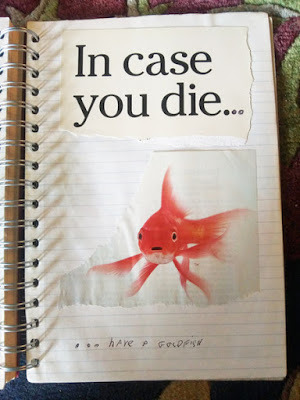 This was just a joke. I saw the words In case you die... in an advertisement, was tickled by them, and added a goldfish and the words ...have a goldfish. It had nothing to do with The Iron Dragon's Mother.