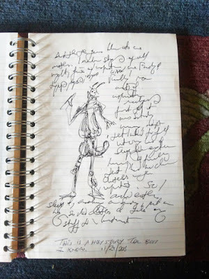 The doodle is of a trickster and, for some reason, I wrote the beginning of what I characterize at the bottom as ...a holy story. The best I know.