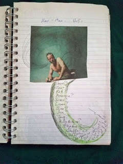 Again, we are reminded how limited my drawing skills are. At the top, it says, "Half-Man Half..." And below it are possible things the fellow might be from the waist down.