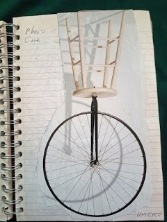 Yes, that's Marcel Duchamp's readymade, Bicycle Wheel turned upside-down. One of the major concerns of The Iron Dragon's Mother (and, indeed, the trilogy as a whole) is the relationship between Faerie and Earth--or, as they call it, Aerth.