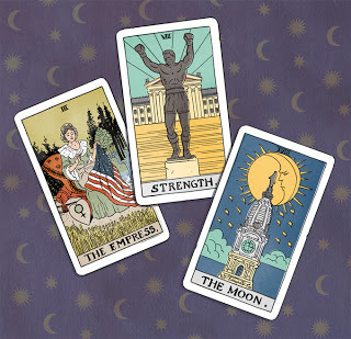 So in thie deck, the Devil is (of course) Gritty. The Emperor is Ben Franklin, the Empress Betsy Ross, and The Lovers are of course Rodin's The Kiss. So far as I can tell, there's not a dud image in the lot.