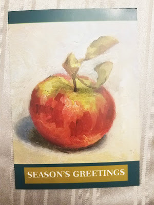 At fist blush, the card from our friend Elizabeth eems to live at least next-door to the holiday spirit. There's a snowman smiling at a friendly-looking bird and in the background is what might be a snow-covered Mount Fuji.