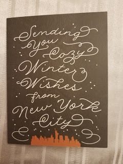Finally, our friend Charlottesent this card from New York City. Sending the message that one of our number neatly encapsulated as: “New York is small and the night is large. The only warmth is here, in the only city that matters. I wish you were here. But you’re not. You’re in the darkness.