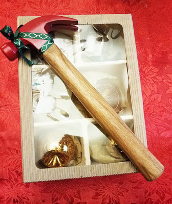 Mr. Jordan's submission this year was a genuine work of conceptual performance art. As the accompanying note says, "The Card is INSIDE the Ornaments." The accompanying hammer, complete with festive bow, implied that there was an obvious way to read the card.