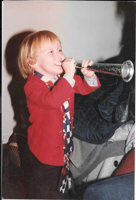 It was bedtime and I was going to read Sean another chapter of Stuart Little. But we got sidetracked and he told me about his dream instead. He was hte engineer on a "strange train" and it went into Dinosaur Land. The dinosaurs were very fierce but there were walls to either side of the track. The dinosaurs couldn't get to him because he'd built gates. THe gates kept the dinosaurs out. He painted hte train in bright colors. It was very bright. It was pink mostly. Was there green? No. Yellow? Yes. Blue? No. He didn't want to paint the bathroom because it was wet. He met an Apatosaurus. What did it say? Apatosauruses can't talk. It wanted to get in. It wanted to know where the gates were, but Sean didn't tell. The train was a half-circle on the bottom and painted very bright inside, and a half circle on hte top. The people who gave him the parts to build the train wanted him to paint it very bright. What were the people who gave him the parts like? "They were Dotty and Louise and Alice and Grandmother and Grandfather."