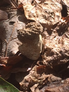 Up above: Amid the litter of the forest floor, there's a pebble topped by an acorn cap. Coincidence, you say? What's that pebble doing atop the leaves? Harrumph. Had it just been thrown there by an energetic foot on a nearby gravel path (but there was no gravel path nearby), what were the odds of an acorn cap, separated from its nut by the force of its fall, landing exactly there? Is that reasonable to expect?