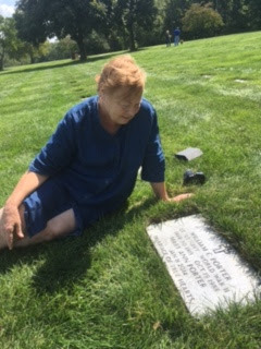 Marianne's mother's remains were interred some while ago, though. We just came to visit and to see that the stone had been carved in accord with her wishes. As it was. It had taken some argument with the VA officials, but they finally agreed to let her have her way: If you look closely at the stone, you'll see that under her husband's name are his dates of birth and death, but under hers only the date of death.