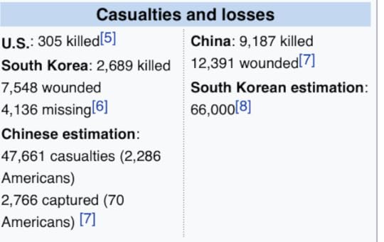 Despite superiority in artillery and aircraft, after 42 days of escalating UN casualties, the attack was called off and PVA forces regained their original positions.
