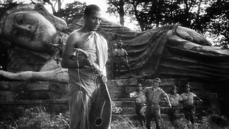 Adapted from the novel by Michio Takeyama, this 1956 film directed by Ichikawa Kon, involves a company of Japanese Imperial Army troops who finally surrender in the last desperate stages of the Burma campaign. When their company commander begins to lead them in songs from their homeland, they discover renewed energy and the will to survive. After they surrender, one of the men, a harp player, fails to convince another group of soldiers holed up in a cave to surrender. Disguised as a Buddhist monk, he escapes to systematically bury dead Japanese troops scattered about the countryside. The film is very powerful and touching.