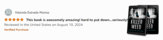 I can’t believe it’s already been a month since Killer Weed was released. The flattering reviews are still rolling in and I have you to thank. How can I ask for reviews any better than this?