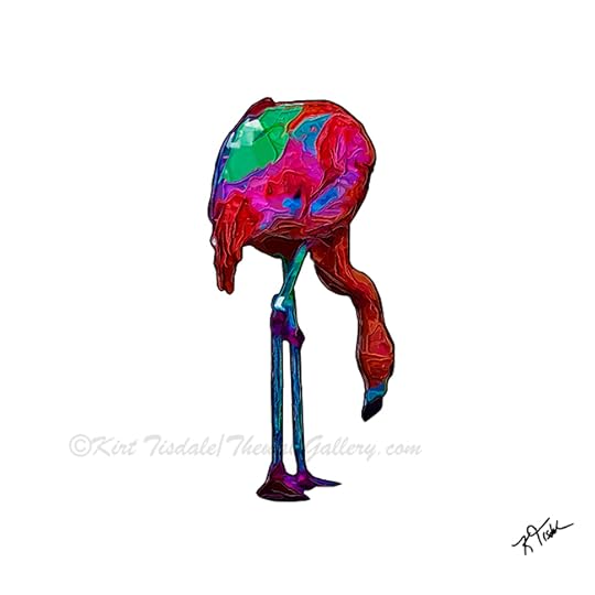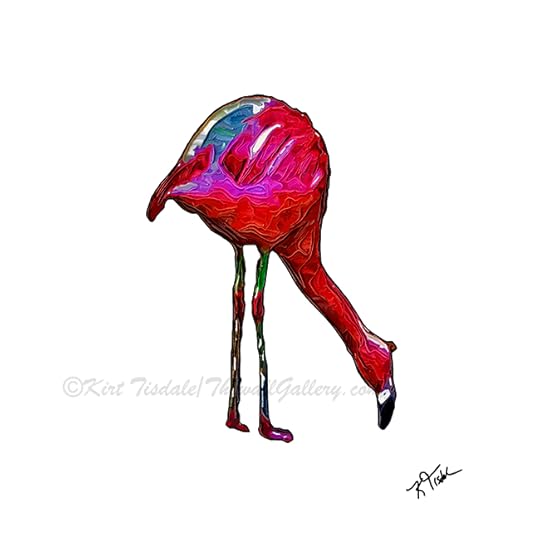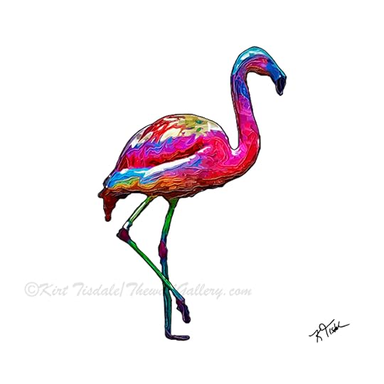 While helping Mom and Dad introduce our granddaughter to animals at the Los Angeles Zoo last fall, the Flamingos caught my attention. I have always loved the look of Flamingos and their coloring. Looking at some of the images I took from a photo shoot, I visualized them in a unique abstract colorful form. I started by drawing the Flamingos in various stages of walking and feeding. I then filled the forms with a variety of vibrant colors. I took those creations and ran them through a digital painting process that creates strong “impasto style” brush stokes. The attached art prints are the resulting images.