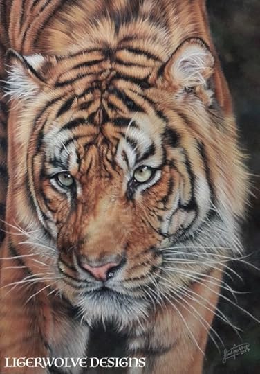 While able to paint in many styles, Thatcher found realism best-suited what she was trying to convey with her powerful pieces. Her technique was developed, as her mother always advocated, by hours of practice. ‘I just sat down with objects and photos set in front of me, and kept drawing until I improved. ‘When I was young, I refused to look at other works, or to be told how to do something. I wanted my creations to be as pure as possible.’ Now, Thatcher’s biggest influence is watching, reading about and studying animals and their behaviour. ‘It has always been a gut thing, for me. I NEED to draw and be creative, and I NEED to be around animals. That is why I continue to volunteer to work with them.’ Thatcher’s instinct has paid off. The recipient of many awards, and with gallery exhibitions, Thatcher has also appeared on television series like Colour in Your Life and Art and Coin, as well as publications in several magazines. Any workshops held are quickly sold out. See more of Janet’s work at http://ligerwolvedesigns.com