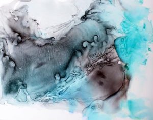 I work with alcohol inks, watercolors, organic pigments, acrylics, on a variety of different types of papers and canvas.