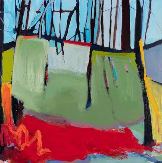 “I painted that one after my dad died,” you say, “He grew up on a farm up in the Pacific Northwest, and he had this thing where he would say the sunlight on the farm shone through the trees like it was coming straight out of heaven. He was a bit of a romantic!”