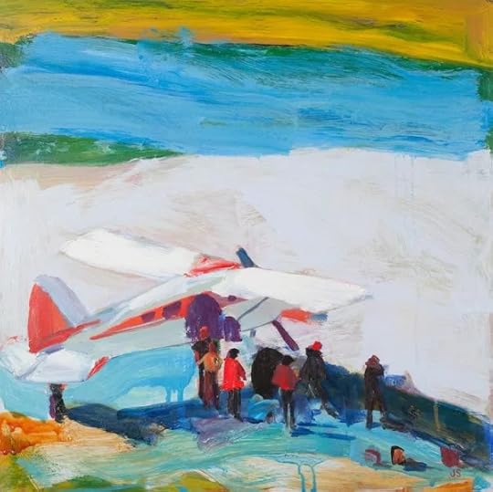 “The Airplane Painting”, Jessica Singerman“I set this goal to do a daily project. I would do a project in one sitting, usually when my son was taking a nap, and I started hanging on to this for dear life. I did that for a few months. We were living in Australia at the time, so I didn’t have a studio. My studio was like the contents of a little box. I learned really quickly that I had to make my work space easy to access, and my projects quick to get into with no clean up. I wasn’t using oil paints at the time, I was using watercolors and inks and drawing. Everything was quick to set up and take down.”