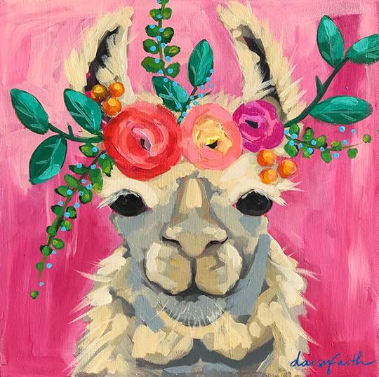 Daisy: My art is colorful, joyful and whimsical. I love painting animals with flower crowns that make you smile, colorful beach scapes and I’m happy to take on commissions for collectors who have a sense of eclecticism and humor.