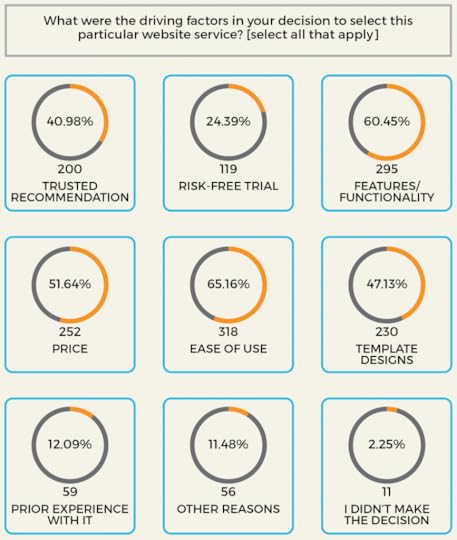 Other Builders – includes a wide variety of more than 20 website building tools, including Adobe tools, Dreamweaver, and GoDaddy’s Sitebuilder program. There were not enough of these participants to give meaningful feedback, but they are also alternatives.