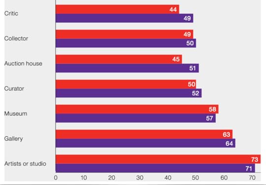 The 2022 Hiscox report says that the biggest influence on buying decisions is the artist themselves – just behind the gallery. But that report is focused on buying art online.