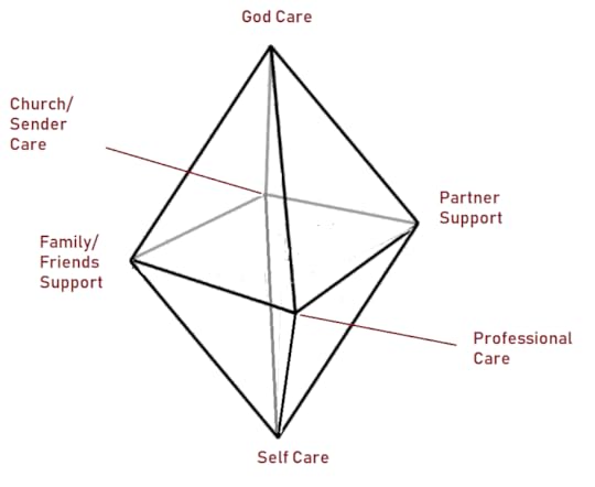 What sold me on Hoffmann’s model was actually seeing him do a presentation live at a missions conference I attended in Cavite Province, Philippines. In that presentation, he took four bamboo poles. Then he got five volunteers. One volunteer was the missionary. and each of the other volunteers took on a human role— family/friend, people helper, church, professionals. Each of these for held on to one of the bamboo poles. Then he showed visually how each group comes along to support the missionary. As these poles come together they form a protective pyramid— the apex of which can be seen as God who brings all parties together in caring for the missionary. Then he shows what happens when a missionary moves and loses parts or all of the pyramid and what happens after that. Seeing it presented in this way, the minor limitations of the model I think are more than compensated for by the visual, almost visceral, way it shows missionary care. Thus, I don’t see myself using the octahedron model in the future.