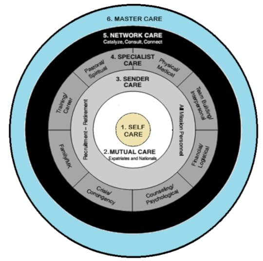 It is good in many ways, and as I said is more comprehensive than Hoffmann’s but there are a couple things I don’t like. (A) I don’t like Master Care being in the middle. This sounds bad since the model is built on the idea that that which is toward the center is more key or important. Master Care (God’s care) is certainly the most key, correct? My issue however, is that God’s care is commonly done through people, so it is not useful in my mind to separate it from other forms of care. In fact, to me it it is better to show Master Care as the outermost ring with the implication, hopefully, that Master Care encompasses everything within it. (B) I never really cared for the next ring where it is cut into half rings with Self Care on one side and Mutual Care on the other. I must admit that it is hard for me to verbalize this dislike of mine. It just seems like a random way to show it.