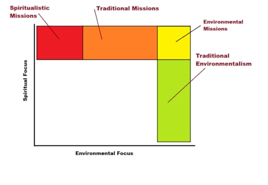 As I was reading, I thought about the different attitudes that missionaries have regarding the environment or environmental ministry. I love diagrams, so I used one I used before in my book on Theology of Missions (The Book is Here). Here is the modified version.