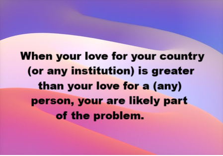If our family, or our educational system, or our church, or our government tells us to hate or abuse a person… that person is not the problem. It is the institution that is the problem. When we go along with the institution in that case, we become complicit with that problem.