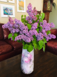 I have been seeing a lot of purple out there since that stranger’s question. I just love when my lilacs bloom and I make a huge bouquet in my beautiful antique vase. It is the happy colour of pure joy while Poppy swings on a sunny day and the hopeful colour of pansies popping up from the winter soil.