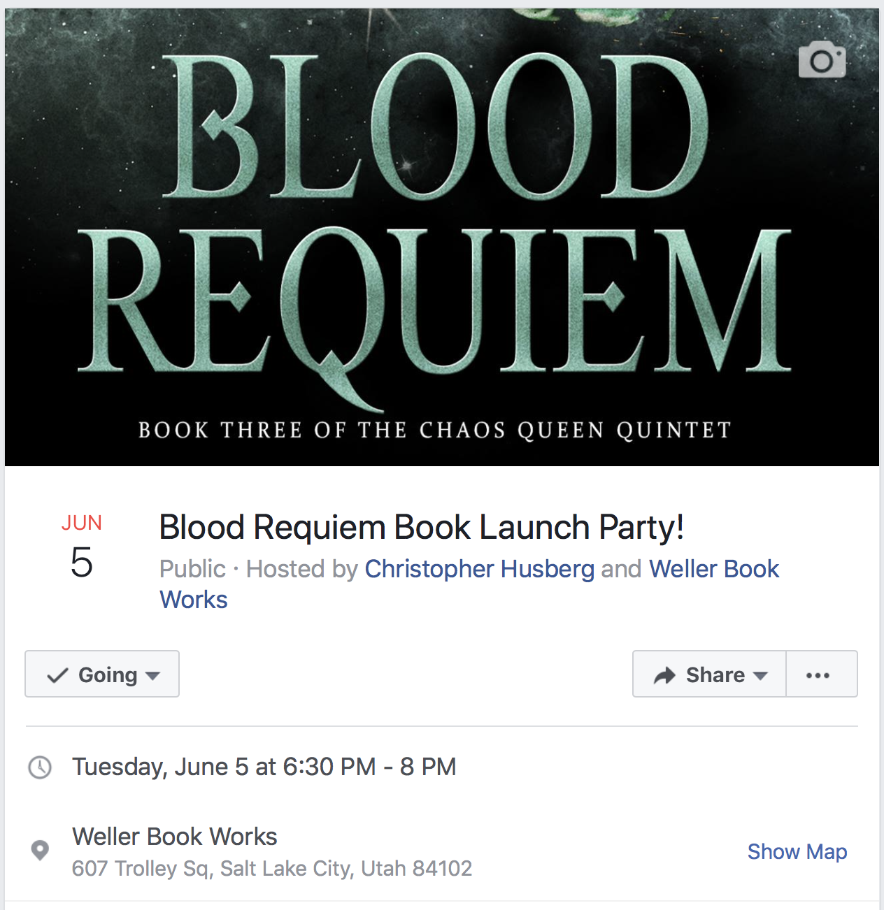 We'll once again celebrate with a release day party at Weller Book Works in Salt Lake City. The event will begin at 6:30 PM with a reading from Blood Requiem, followed by a brief Q&A, and then The Signing of the Books.