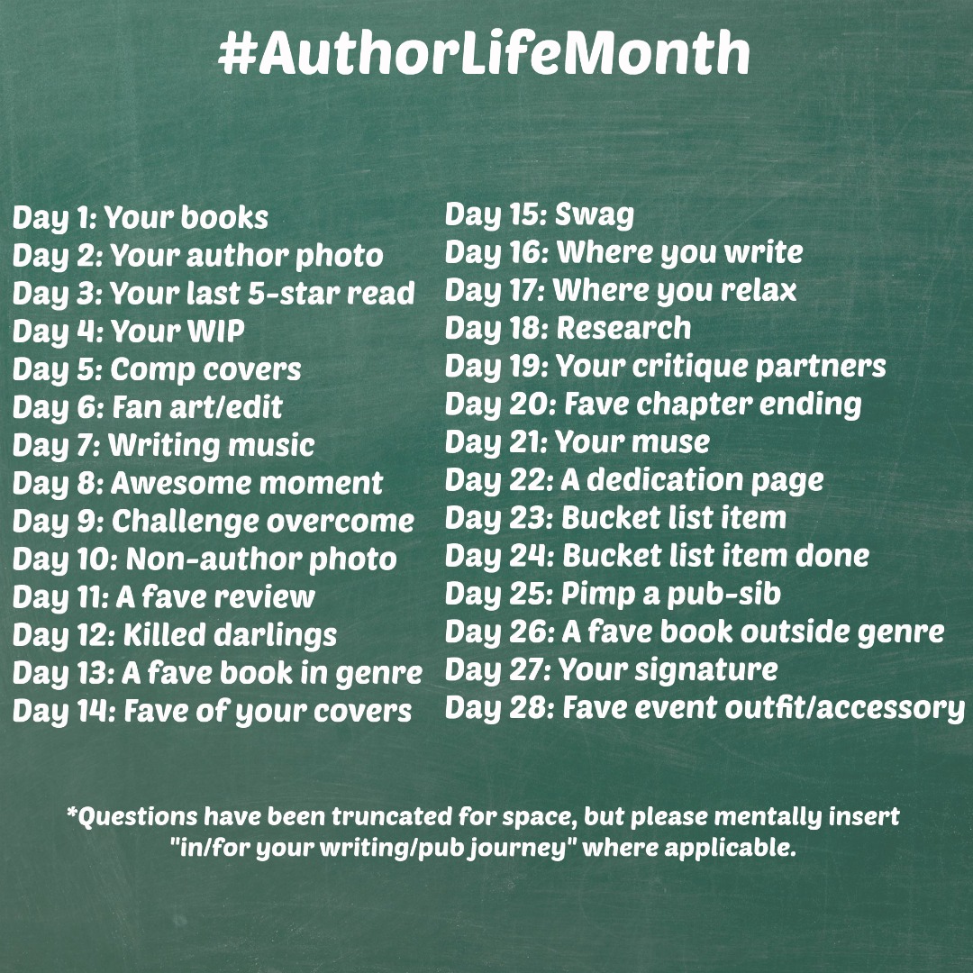 So in an effort to rekindle my blogging prowess, I'm participating in #AuthorLifeMonth (the hashtag is superfluous, I know, but hey it's fun). Author Life Month, as far as I can tell, is mostly an Instagram thing where authors post one picture each day in the month of February going through a list of 28 items: