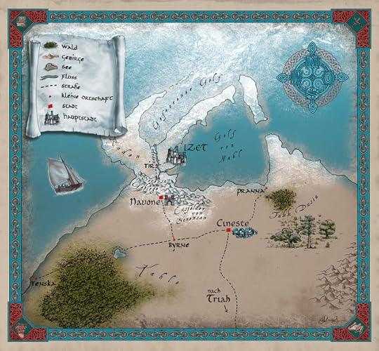Secondly, the wonderful irony is that my German publisher actually did decide to put a map in their edition of the book--and I love how the map turned out. The artist responsible (Andreas Hancock--you can check out his webpage here, although it's in German, so good luck) was kind enough to allow me to post the image on my webpage for all of my US/UK fans.