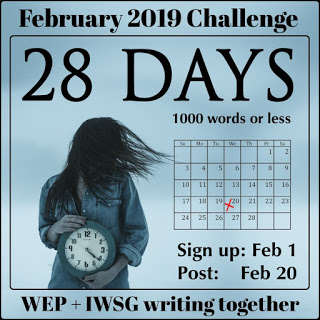 The first WEP challenge for 2019 went live on Feb 1st. Go HERE to sign up for posting around Feb 20th. Flash fiction, non-fiction, photo essays, poetry...to 1,000 words.