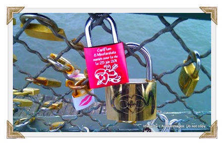 It’s our wedding day. May 25, 2011. The most romantic day of my life is finally here and I’m spending it in the most romantic city in the world. Ooh la la!Can I take it all in? Everywhere I look there is beauty – Notre Dame's aged bricks and soaring buttresses being kissed by sunset – the lock-filled bridge, the Pont des Arts that joins the Left Bank and Right Bank – lovers sharing wine and baguettes, dangling their legs in the Seine and throwing bread to the ducks. As I walk beside the river, my candy pink dress with its French Poodle embroidery flares around my knees. Pink satin heels complement my black net stockings. I clutch the tiny posy of white roses which my darling Mitch handed to me on the steps of the town hall, known here as the mairie. Their scent envelopes me as I walk arm in arm with my beautiful man feeling oh so French.Mitch, so handsome in his black suit, kisses the white gold and diamond ring on my finger – Could this day get any better?‘Let’s do it!’ he says.We walk to our chosen spot midway across the Pont des Arts. Mitch reaches into his pocket and flips the copper lock in his hands.We gaze at the token as if it were made of solid gold.