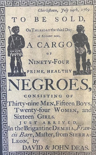 A handbill advertising a slave auction in Charleston in 1769 - courtesy of Weekend Australian newspaper.