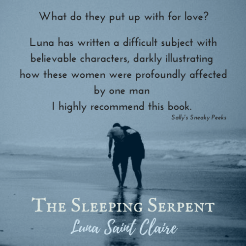 Luna Saint Claire managed to create characters that you develop bonds with in The Sleeping Serpent that I have not had with a book in a while. I was so angry with the character Luna at points during reading that I wanted to put this book down and not pick it back up; but I dived right back into the story to see how things would turn out. This story does have psychological components to it that make you think about what you would do if you were in that situation yourself and ask how far would you let things go after they get out of hand. Would you have the strength to walk away if you were in too deep? Though I think that I would, it’s never a question you think to ask yourself until you are living it. I look forward to seeing more from Luna Saint Claire in the future.