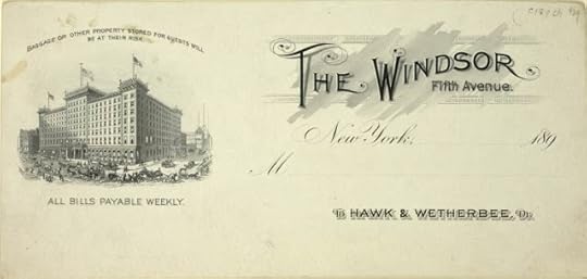 Sadly, New York has been an ephemeral city. Many buildings were demolished or burned, one of which was the Windsor Hotel on 46th Street and 5th Avenue, conveniently located close to the Grand Central Depot, a short walk to the Windsor for those who traveled by train. The Hotel welcomed the wealthy, from Barons to Dukes, and according to the New York Times, the Windsor was “most luxurious and aristocratic hostelry in New York.”